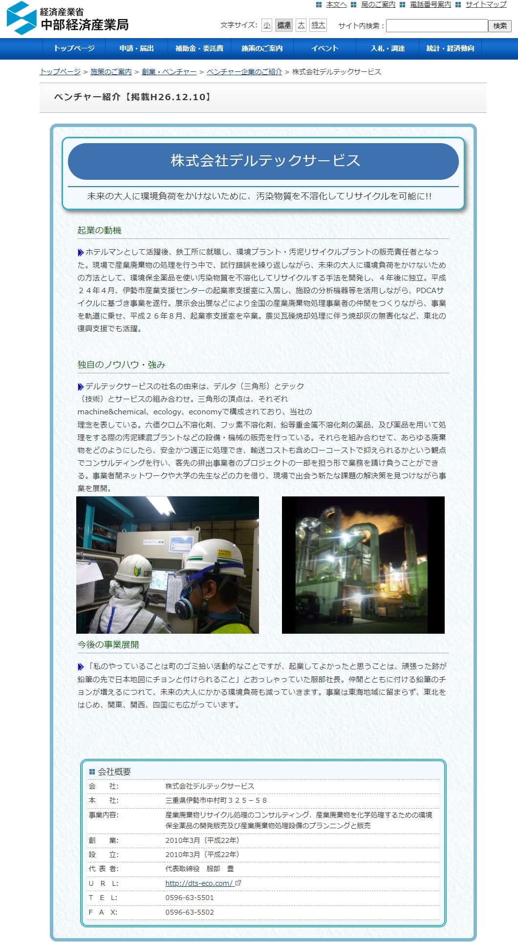 ・産業廃棄物を化学処理するための環境保全薬品の開発、販売 ・産業廃棄物の処理設備(機械)の販売 ・産業廃棄物処分のコンサルティング業務 |